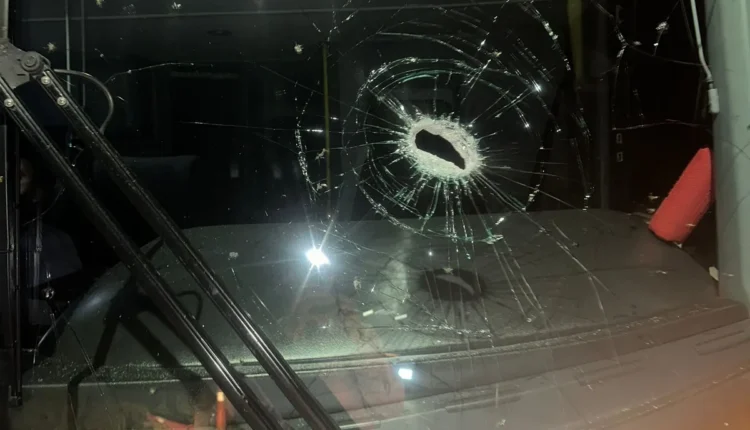 La unidad de la empresa Del Sur y Media Agua fue blanco de una pedrada en la localidad de Añelo. El conductor sufrió heridas en los ojos por el estallido del parabrisas.
