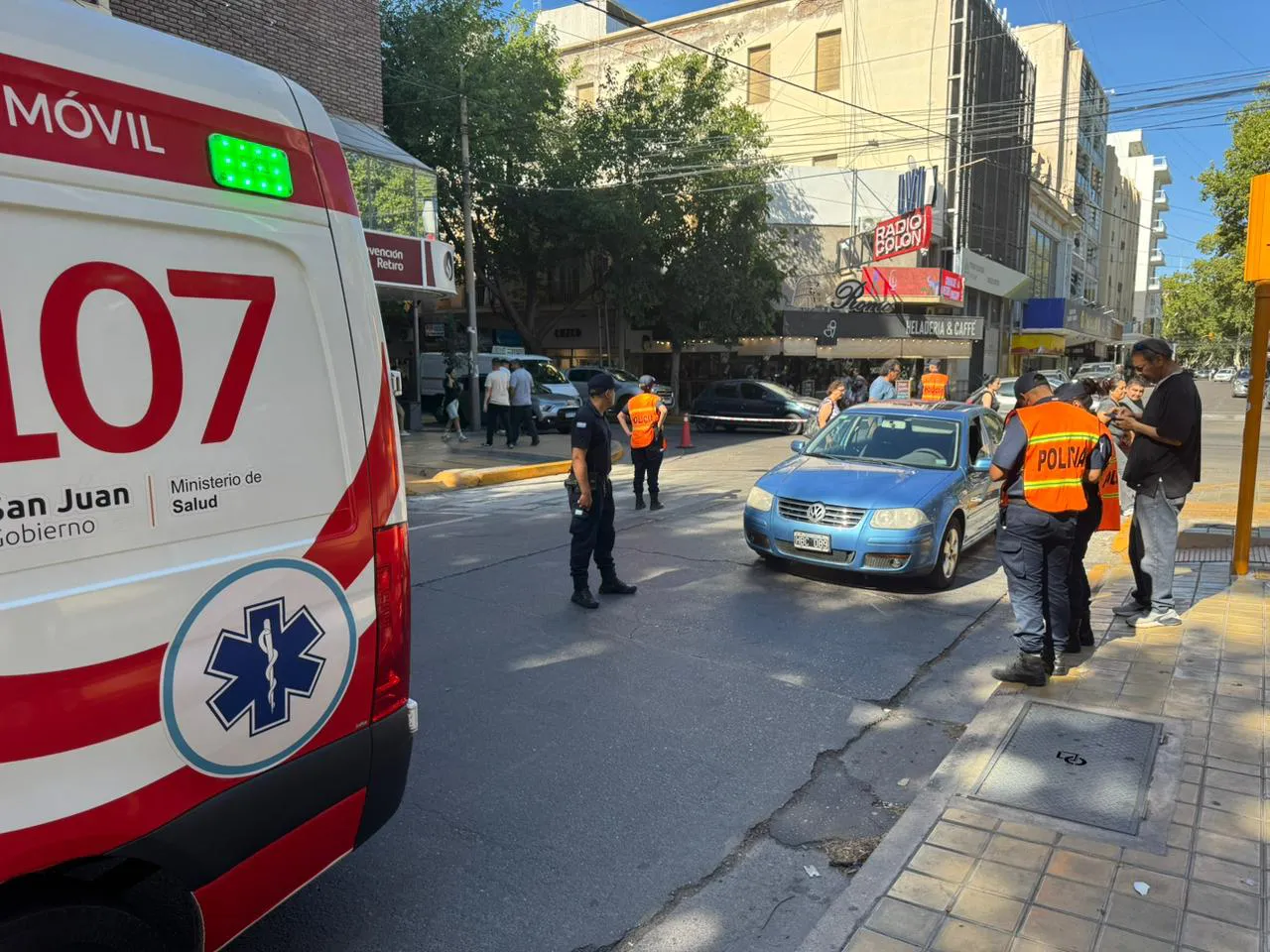 Una mujer de avanzada edad fue embestida por un automóvil en pleno Centro sanjuanino. Sufrió pérdida de conocimiento y fue trasladada al Hospital Rawson; investigan las causas del siniestro.