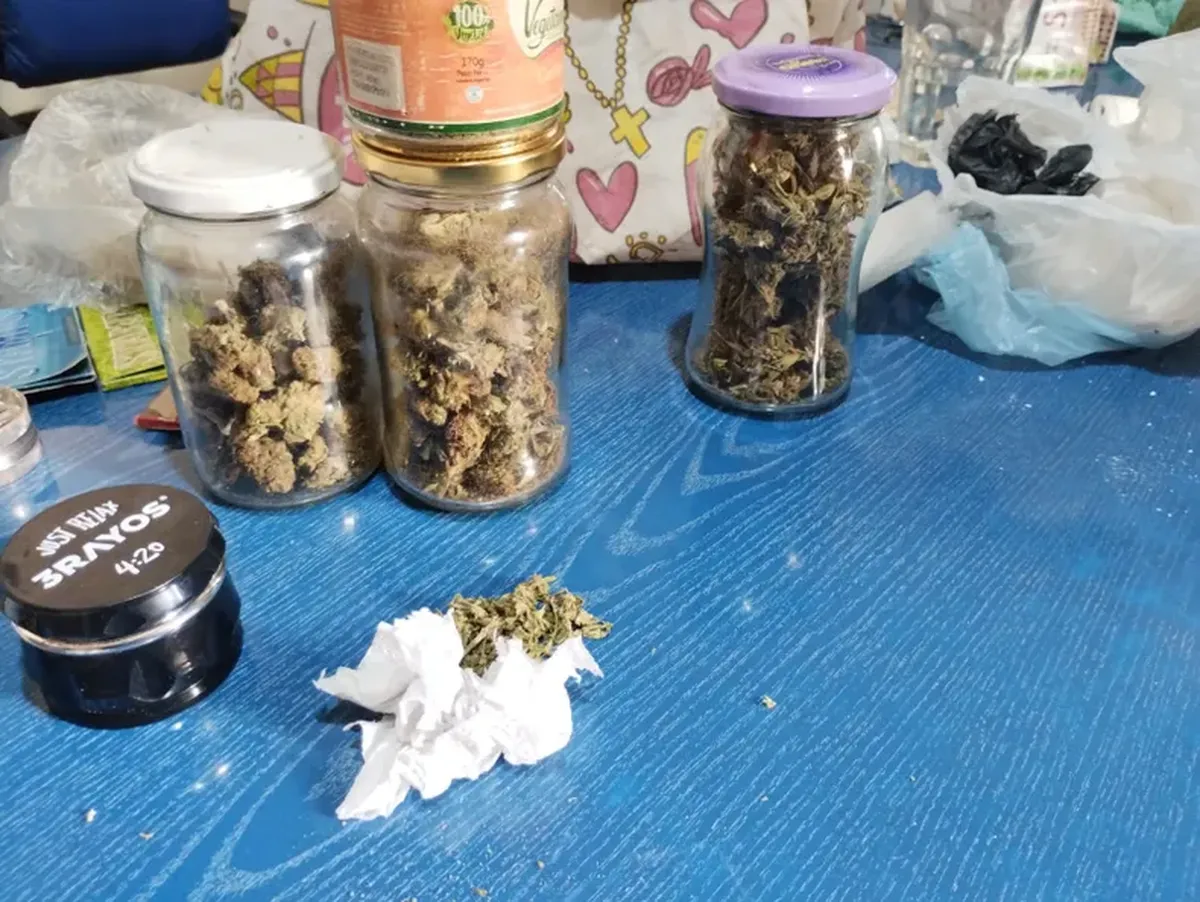 Posteriormente, en un allanamiento en su casa del barrio Los Pinos, la policía incautó unos 270 gramos de marihuana, 273 gramos de cocaína y dos balanzas de precisión, elementos vinculados al fraccionamiento de drogas. La Justicia Federal tomó intervención por los estupefacientes, mientras que la causa por abuso de arma sigue en el fuero ordinario.