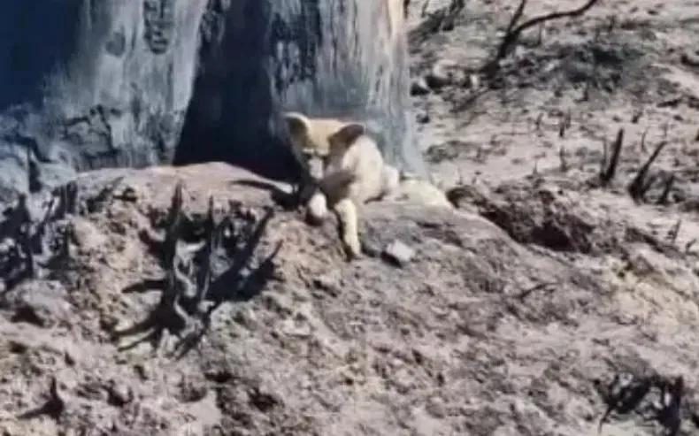 El animal fue hallado con graves quemaduras entre los restos calcinados del monte. Fue asistido por un proteccionista y permanece internado bajo cuidados intensivos.