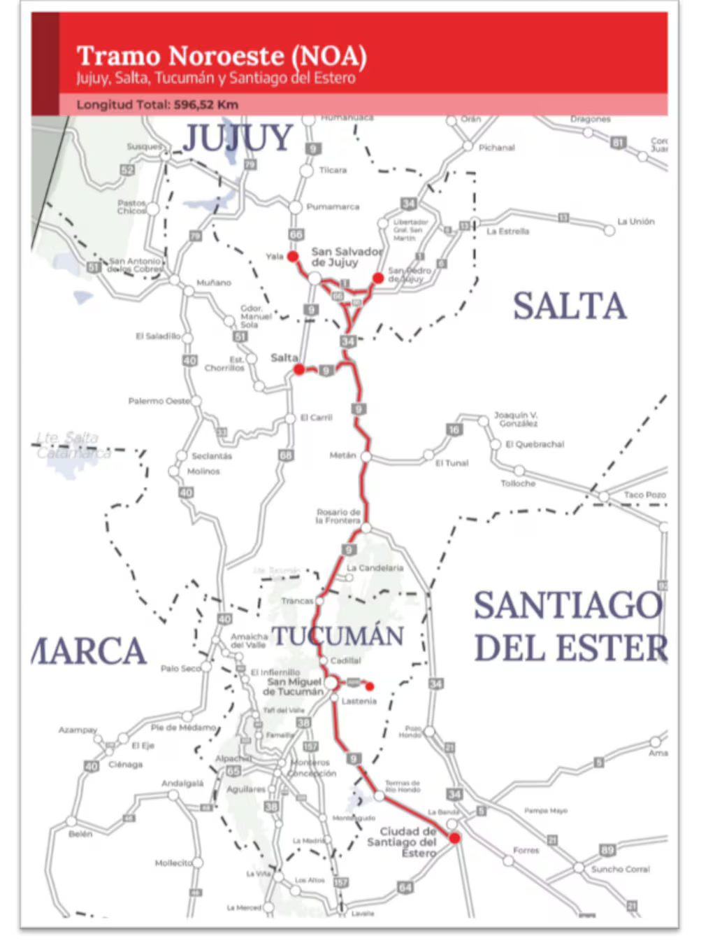 Los llamados lanzados este jueves incluyen los tramos Centro (ruta 9; ruta nacional 19 y la ruta nacional 34, todas entre Rosario y Córdoba); Centro Norte(ruta nacional 34 entre Santa Fe y Santiago del Estero); Noroeste(ruta nacional 9 desde Santiago del Estero hasta Saltay desde San Salvador de Jujuy hasta Yala, junto con segmentos de las rutas 34, 66, 1V66 y A-016).