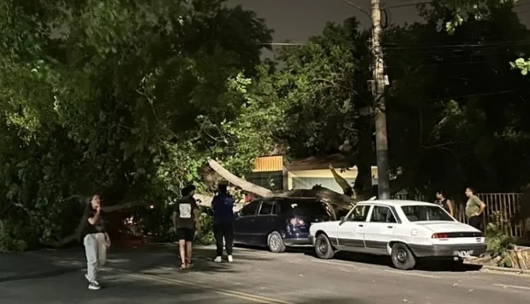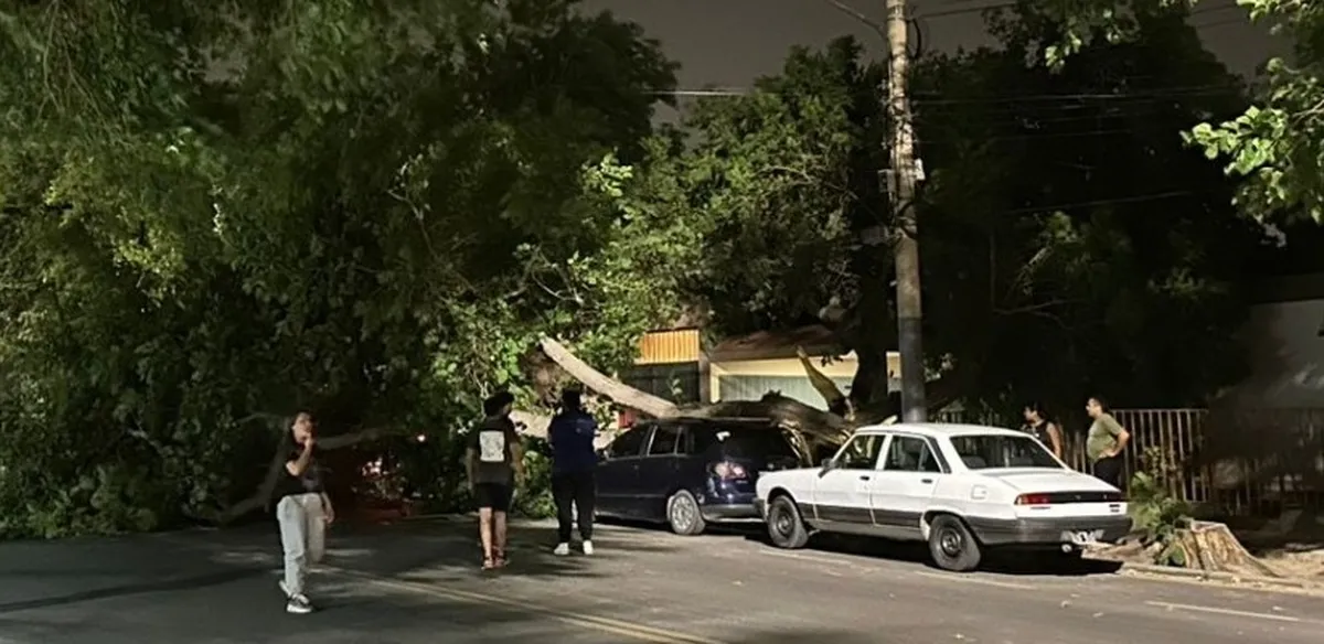 El viento provocó la caída de una rama que terminó aplastando a un auto en Capital