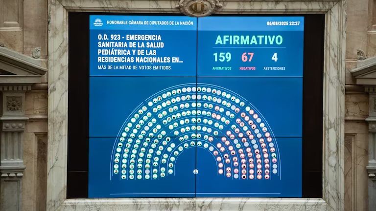La oposición logró una segunda victoria legislativa en la mega sesión de Diputados con la aprobación del proyecto que declara la emergencia en pediatría. La votación cerró con 159 votos positivos, 67 en contra y 4 abstenciones, lo que representa una mayoría agravada de dos tercios del total que podría tener un impacto significativo si el gobierno nacional decidiera eventualmente vetar la ley.