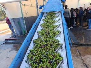 La gira incluyó visitas a las empresas Seis Marías y Solfrut, con foco en cosecha mecánica y procesos en almazara.