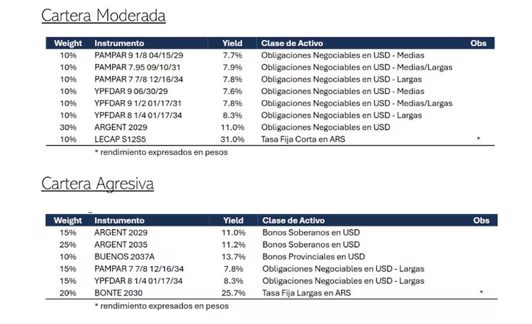 Por otra parte, desde Adcap también elaboraron un menú de portafolios con un perfil moderado y otro agresivo, en base a Obligaciones Negociables, Letras y bonos soberanos.