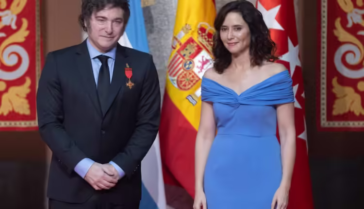 Debido a la proximidad ideológica, la Presidenta de la Comunidad condecoró al libertario con la Medalla Internacional de la Comunidad de Madrid, lo que generó el rechazo del Partido Socialista Obrero Español (PSOE) que lidera Pedro Sánchez. La medalla se entrega a autoridades de países extranjeros por su labor institucional.