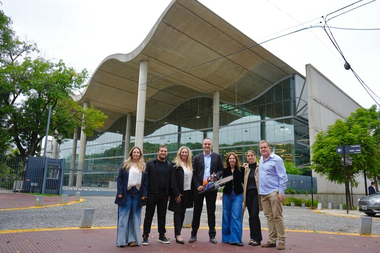 La secretaria General de la Presidencia, Karina Milei, el vocero presidencial y cabeza de lista de candidatos libertarios, Manuel Adorni, y el resto de los postulantes fueron a la sede del gobierno de la Ciudad de Buenos Aires y se sacaron una foto con una motosierra, símbolo de la propuesta de ajuste del gasto político que instaló el presidente Milei.