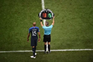 Por su parte, para los cambios de jugadores, los que dejen el campo de juego deberán hacerlo en un plazo máximo de 10 segundos desde que se levante el cartel. Si el que saldrá reemplazado no cumple: el jugador deberá salir igualmente, pero el sustituto no podrá ingresar hasta la primera interrupción del juego luego de que transcurra un minuto de tiempo real.