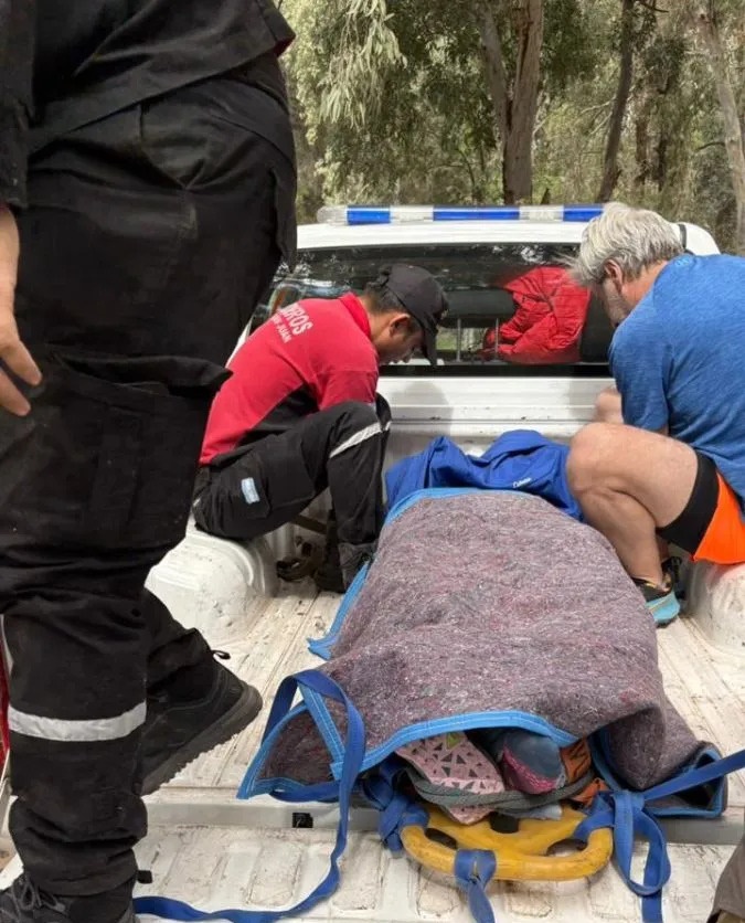 Efectivos de la Comisaría 30° ingresaron a pie con una tabla rígida y un bolso de trauma para inmovilizar a la víctima. Luego, mediante el uso de cuerdas, realizaron el descenso desde una cresta del cerro para trasladarla hasta una zona segura.