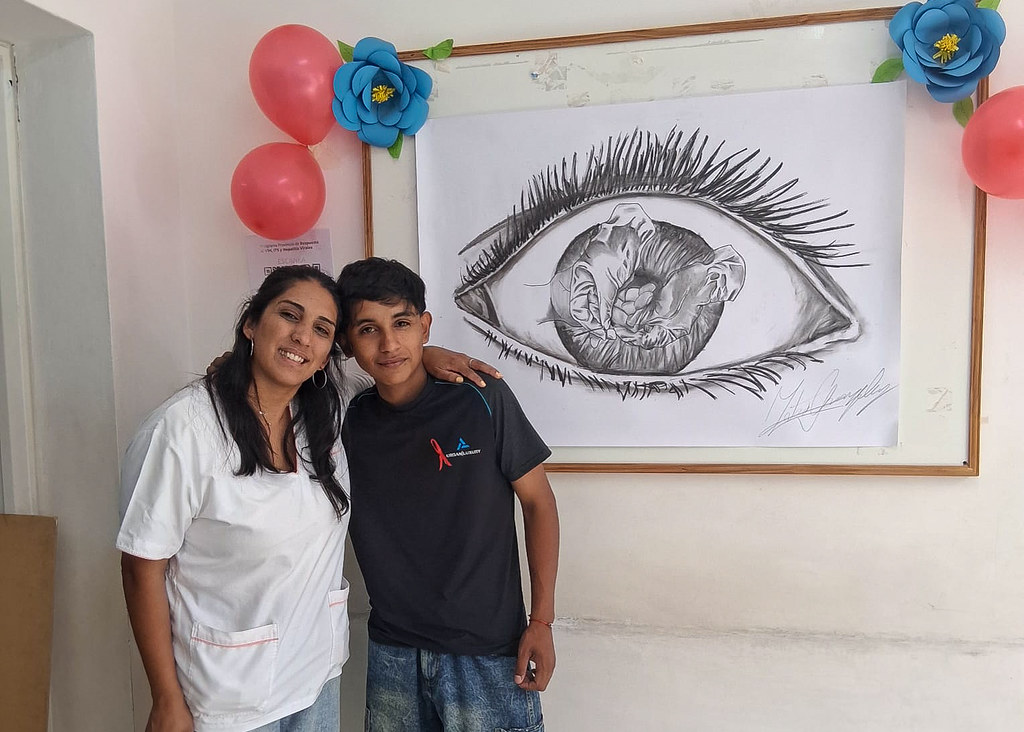 El cierre de la actividad contó con un momento de gran valor simbólico a través de la participación de Mateo González, un joven de 16 años de la comunidad pocitana, quien realizó una obra de arte en vivo. Mediante su expresión artística, logró transmitir un mensaje claro sobre la importancia de realizar los testeos a tiempo, reforzando la prevención y el cuidado de la salud.