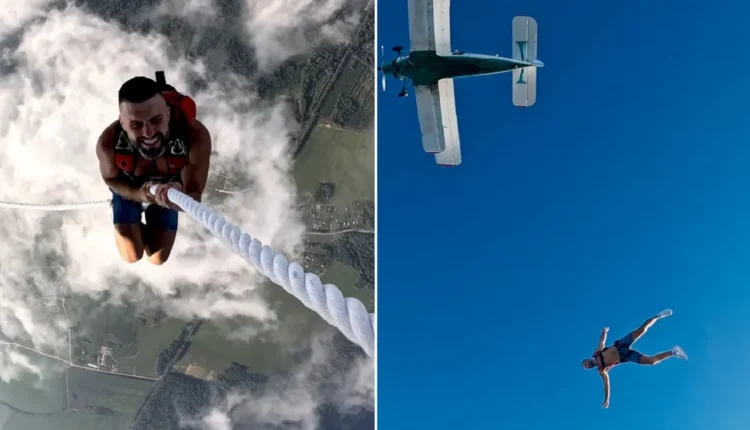 Saltó de un avión en vuelo sin nada y regresó por una cuerda