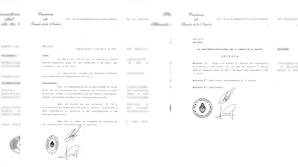 La vicepresidenta y titular del Senado, Victoria Villarruel, evitó firmar la resolución y el documento en cuestión fue rubricado por el presidente provisional de la Cámara alta, el libertario Bartolomé Abdala, pasadas las 20.30.