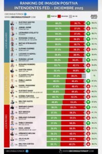 De acuerdo con la medición correspondiente a diciembre de 2025, Laciar alcanza una imagen positiva del 55,2 %, un resultado que la posiciona entre los dirigentes municipales con mayor respaldo ciudadano a nivel nacional.