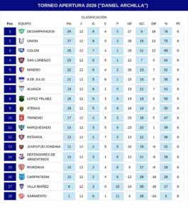 Con este resultado, Desamparados llegó a 28 puntos y se despegó por uno de Unión de Villa Krause, que quedó como escolta con 27. Minero, en tanto, alcanzó las 22 unidades y se mantiene en el quinto puesto, todavía prendido en la pelea por clasificar.
