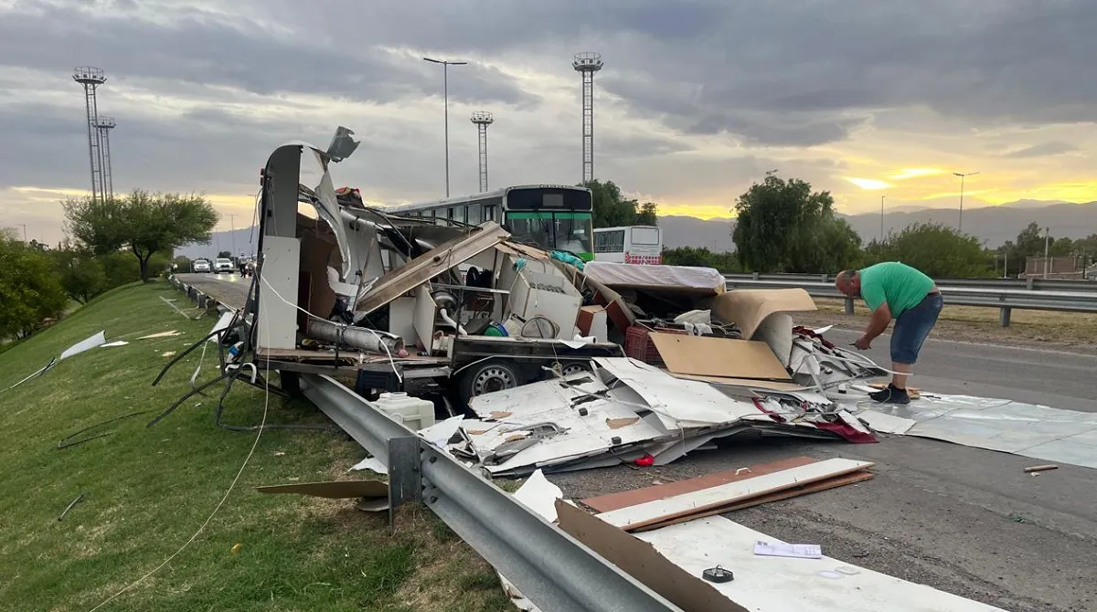Una casa rodante terminó destruida esta tarde en cercanías de Acceso Sur y calle General Acha. La caravana se desenganchó de la camioneta que la traslada y terminó golpeando fuertemente contra un guardarraíl. Afortunadamente nadie viajaba en su interior.