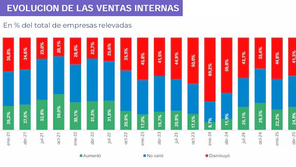 Más allá de la leve recuperación del MDI, el balance sectorial sigue mostrando predominancia de resultados negativos. En ventas, por ejemplo, el 41,3% de las empresas informó bajas, mientras solo el 24,9% reportó aumentos.